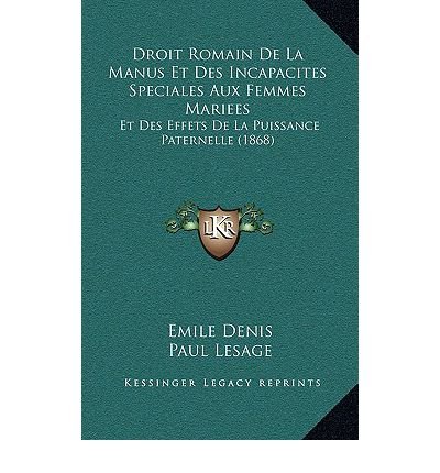 .Droit Romain de La Manus Et Des Incapacites Speciales Aux Femmes Mariees: Et Des Effets de La Puissance Paternelle (1868).